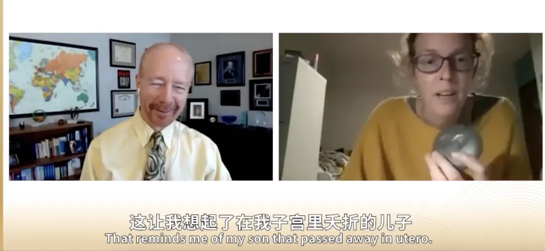 “这句话对我帮助很大。即使是新生儿也要放在 ta 的婴儿床上,你不能 24 小时或(一周)7 天带着孩子,一个很好的新手妈妈也会把孩子放下,去休息和睡觉,这样她才能照顾好孩子。我不必一天 24 小时地哀伤,可以暂时放下我死去的孩子,不必时刻想着她,可以好好地睡一觉,我可以去吃些东西,正常地生活一小会儿,然后在我做好准备的时候再把她抱起来,就像妈妈照顾她的孩子一样。”