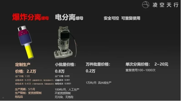 但在YKJ-1000上,他们选择使用电动的分离螺母——这东西没有资质限制,小批量可以靠工人手搓,大批量可以流水线生产,月产可达10000件,价格被打到了2000元。而且因为是电动,所以检测起来也非常容易,产品可靠性杠杠滴。