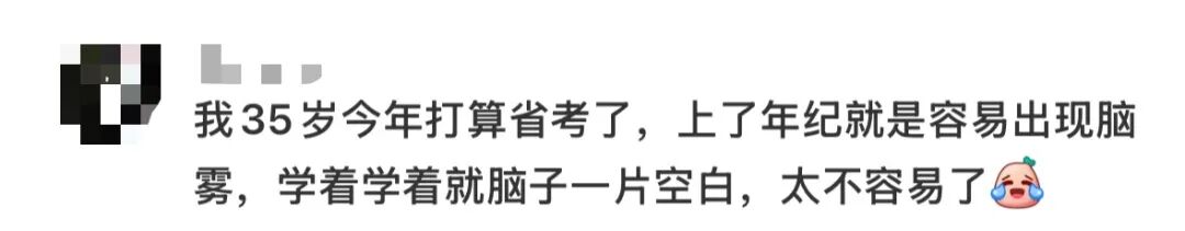 一些中年人刚兴致勃勃准备报考,以为国考给自己开了一扇窗后,就会发现自己的身体状况早就把这扇窗焊死了。太一说,自己自从开始认真备考后,发现脑子已经退化成了自己不认识的样子。