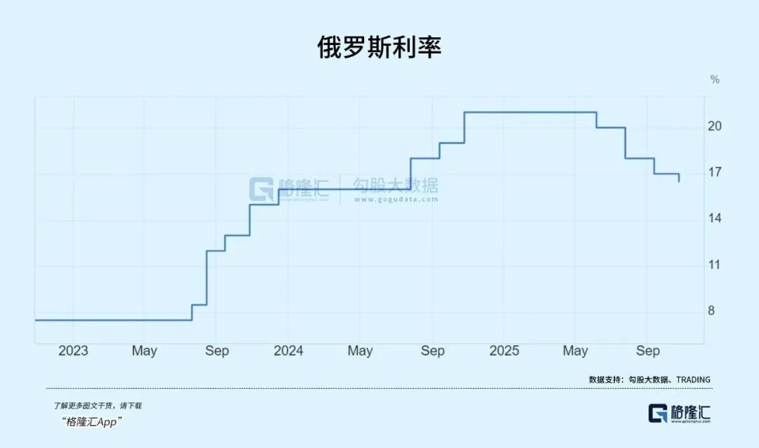 截至2025年10月27日,俄罗斯央行的基准利率为16.5%,2025年基准利率均值预计为 18.8%~19.6%。
