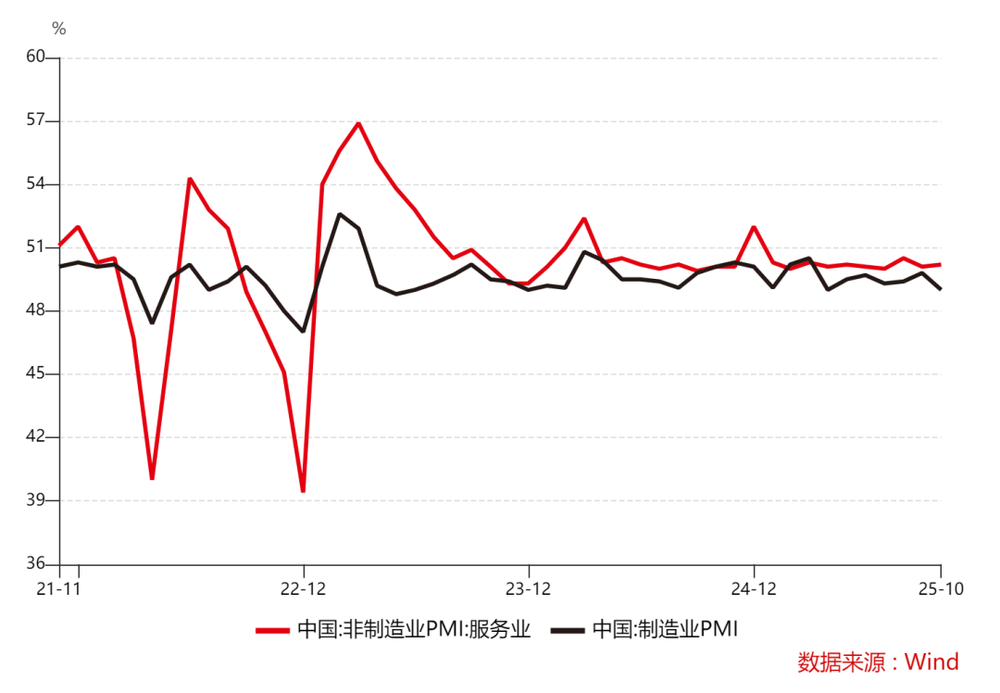 但细究之下,这是一个很奇怪的现象。前不久,我们的经济学家才提出,中国的服务业是高度匮乏的,服务业的供给是不足的,未来增长的希望在服务业。服务业的PMI也在很长一段时间领先于制造业。如果我们环顾周围,会发现中国的服务业在经历了寒冬之后,也确实在缓慢复苏之中。