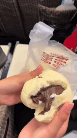 刚下蒸锅,还冒着丝丝的白气,这蒸饼儿乍看起来就是个打了花印儿的大白馒头。它也确实拥有北方人所喜爱的馒头的一切优点:老肥大碱,暄软又筋道。掰开略带韧性的皮儿,热乎乎的巧克力流心哗哗往外直涌,浸润了发面的空隙,巧克力的甜香与朴实的面碱香味交缠到一起,竟然意外地和谐。