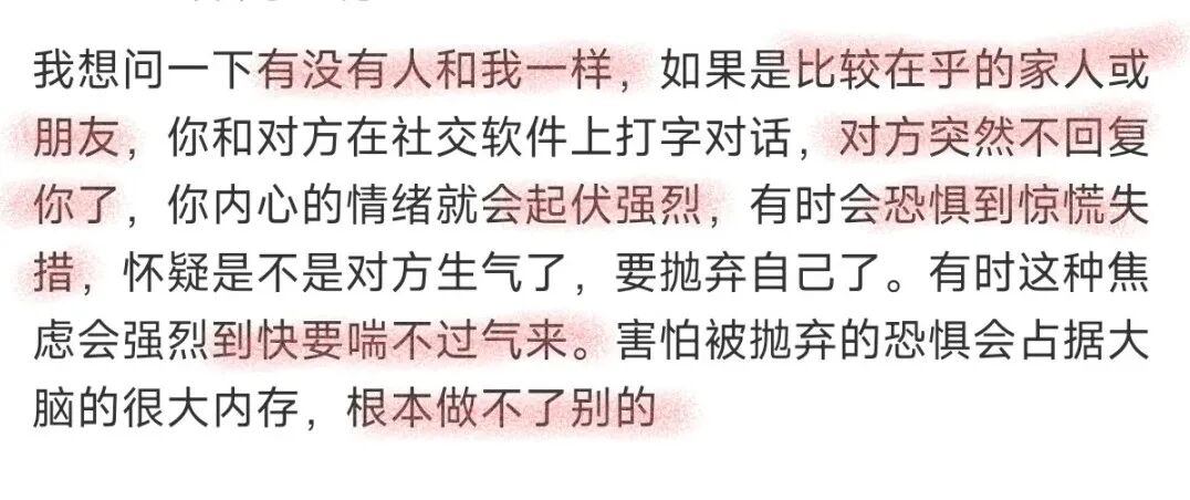 一部分网友觉得,已读不回的杀伤力堪比断崖式分手。对方突然不回复时,自己会非常焦虑和恐惧,甚至喘不上气。