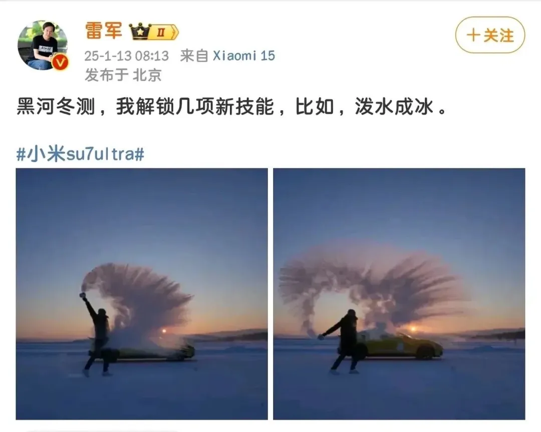 后来,这两家的创始人李斌和雷军,还一起去东北进行极寒冬测,带着网友们一起玩“泼水成冰”。