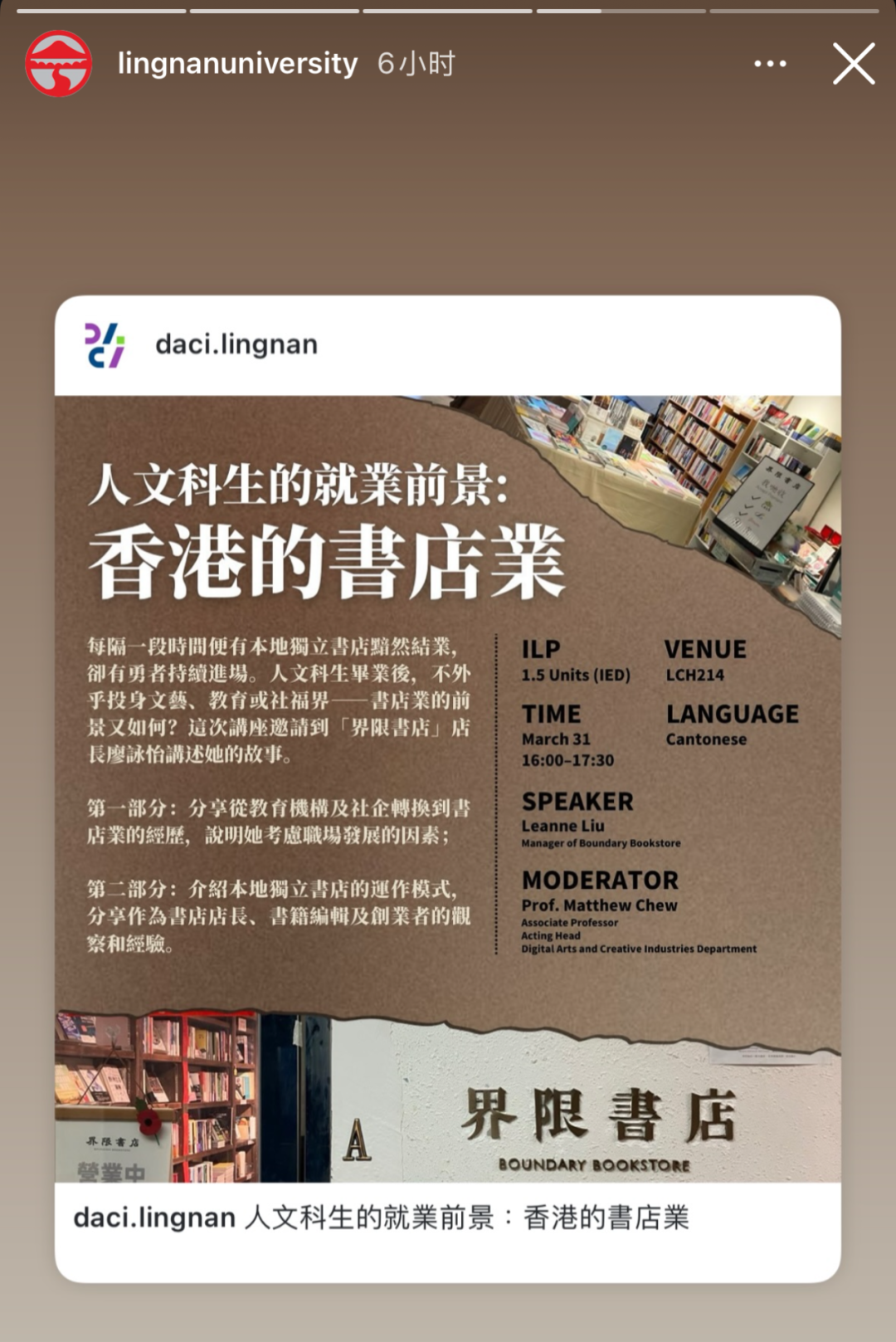 “我不知道我如果在其他学校会不会遇到这样的事情。但是我觉得因为副学士它很小,大家班里就这么几个人,老师对每个人的情况也都非常了解。所以我觉得确实是一个认识的到好老师,并且建立一些联系的好机会。包括我生中大新闻的时候,我应该是有找川sir帮我写推荐信。因为他之前有在TVB待过,他就是在新闻行业有待过,所以我是有找他帮忙,他就立刻答应了。所以我觉得经历都是非常宝贵的,我觉得就是得看每个人的选择。你如果选择去在这个阶段去好好学的话,你的路一样是可以,至少对你自己来说是满意的。我现在也是更加觉得,我如果没有走副学士的话,我的路可能会非常不一样。说点俗的就有点“命中注定”的感觉。每一步路都是非常命中注定的,就是走到这儿就是这儿,走到那儿就是那儿那种感觉。”