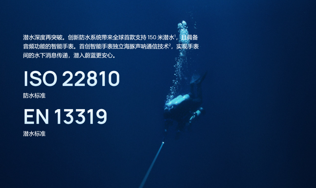 像华为在去年推出的 Watch Ultimate 这款手表,也宣传支持 100 米潜水,而它通过的潜水标准认证跟小米一样都是 EN 13319。