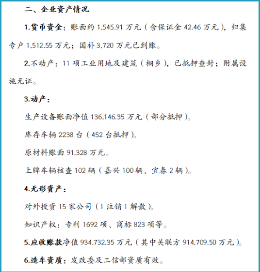 根据哪吒汽车招募重整投资人的公告,其资产主要包括固定资产、机器设备、知识产权以及应收账款等项目。核心的资产包括在桐乡的工业用地和工厂设备,在江西宜春、广西南宁的两个生产基地,在安徽桐城、凤台、凤阳三个零配件工厂,以及在泰国和印尼的CKD工厂。