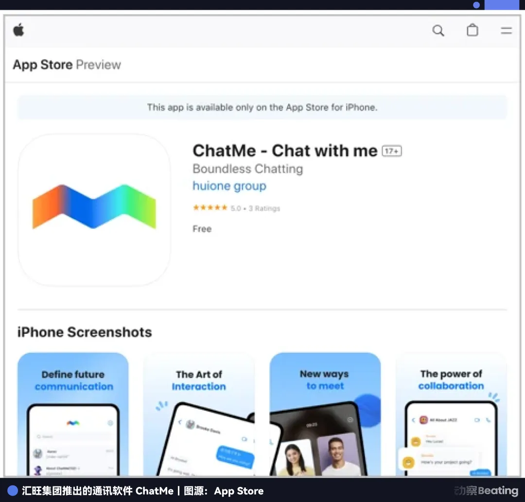 在这次大迁徙中,汇旺集团不仅是推手,更是幕后的操盘者。他们不仅入股了“土豆”,实现了业务的换壳重生,甚至开发了独立的通讯软件ChatMe,试图构建一个完全封闭的、自给自足的数字暗黑王国。