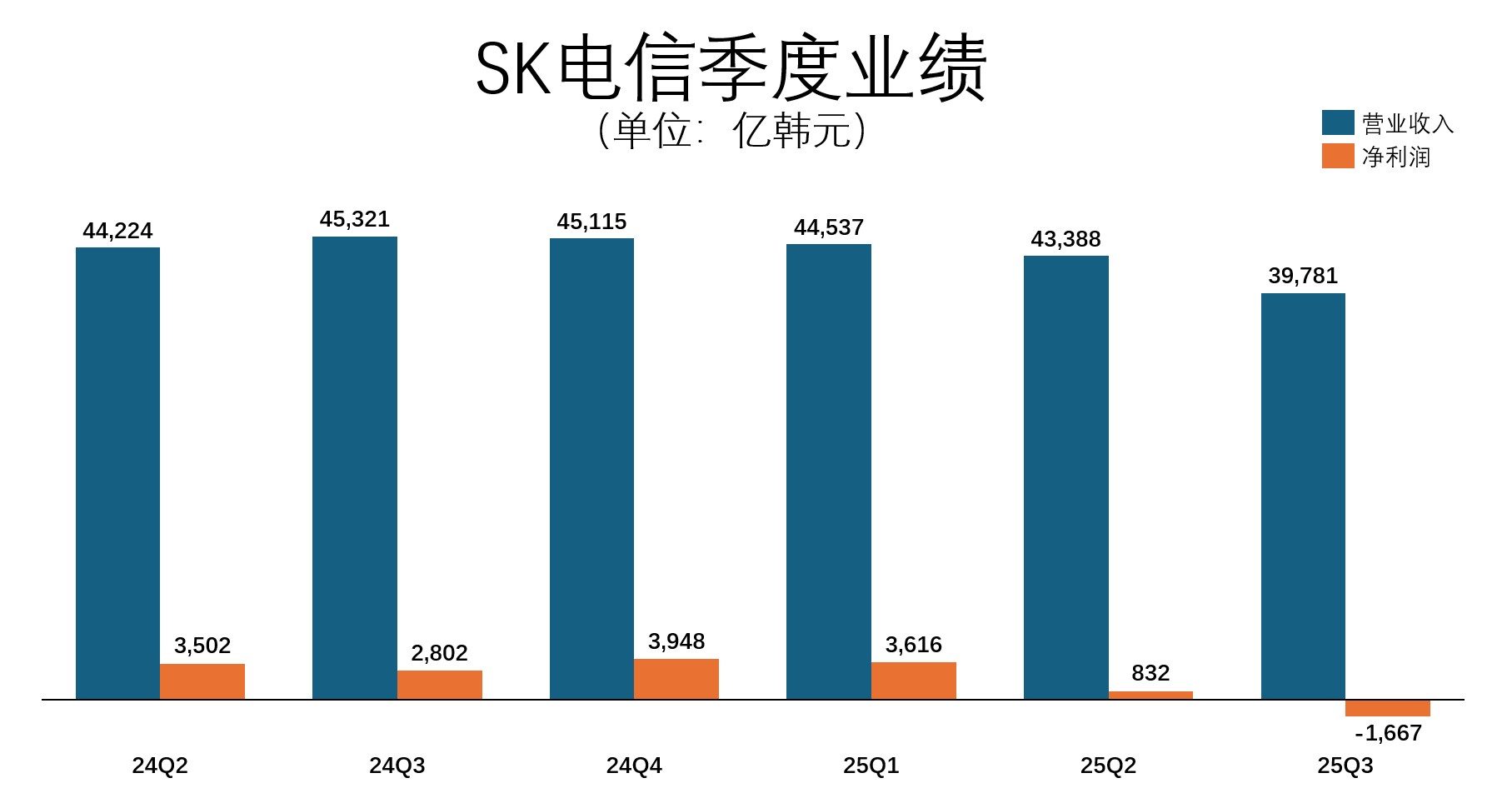 SK电信新任CEO邓在宪在10月底公布了令人失望的2025年第三季度财报,其营业收入同比下滑12%,营业利润同比下滑91%,并且由于确认了一笔高达798亿韩元的“一次性损失”,当季录得1667亿韩元的净亏损。