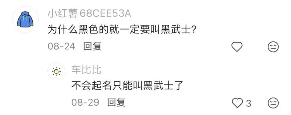 即便车企努力想另起炉灶,给自家黑化版本取一些新名字,比如“暗影特别版”“暗夜骑士版”“夜行生物版”等,大多数媒体为了便于读者快速理解,也会统一用“黑武士版”指代,甚至直接放到标题和导语里。至于用户,他们不一定了解“黑武士”在汽车领域的原始含义,但称自己的黑车为“黑武士”显然更“酷”、“神秘”,哪怕车本身只是普通黑色涂装。