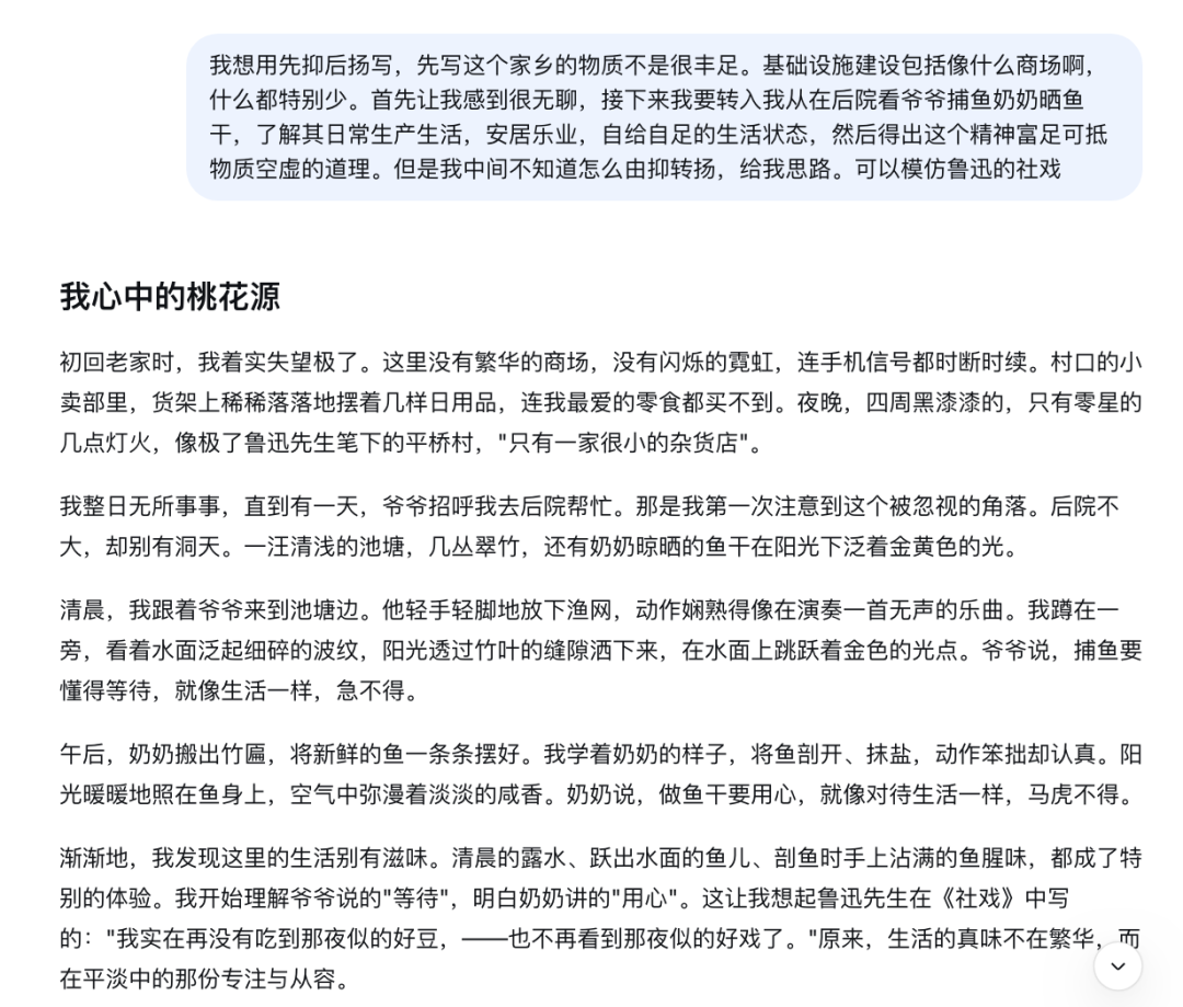 与数学这样有标准答案的学科不同,语文教育、特别是作文教育强调发散性思维,终极目标是培养出更有想象力、更有同理心、更有人文素养的人。AI能迅速给出任何关于数字的标准答案和解题过程,也能迅速生产出老师的批改、学生的范文,但这样的AI对于语文教育、作文教育而言,究竟是“帮手”还是“杀手”?