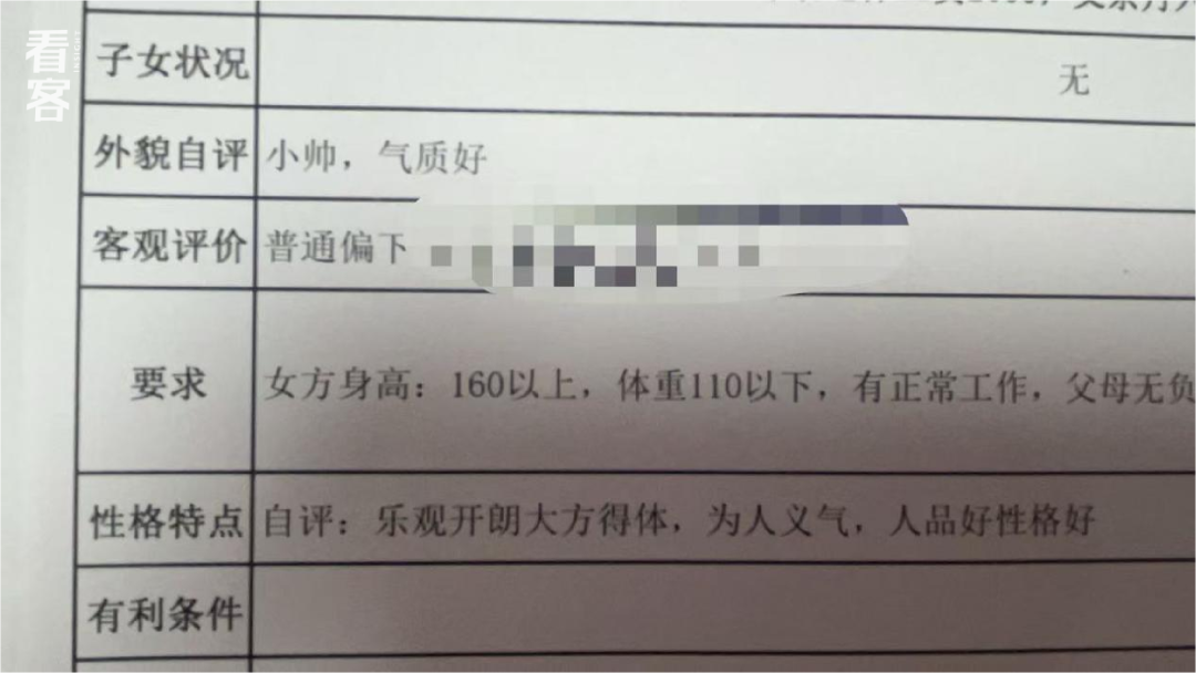 婚介所里的登记表,会分为“自评”与“客观评价”