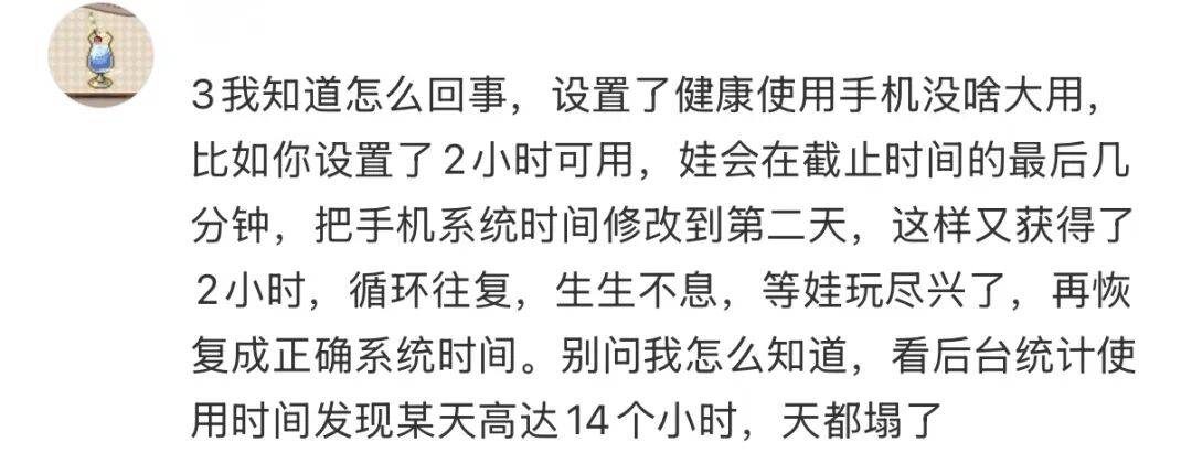 她也不瞒着:这有什么难的,屏幕时间到了之后,可以单个app申请暂时使用一分钟,我就一分钟一分钟地玩呗。