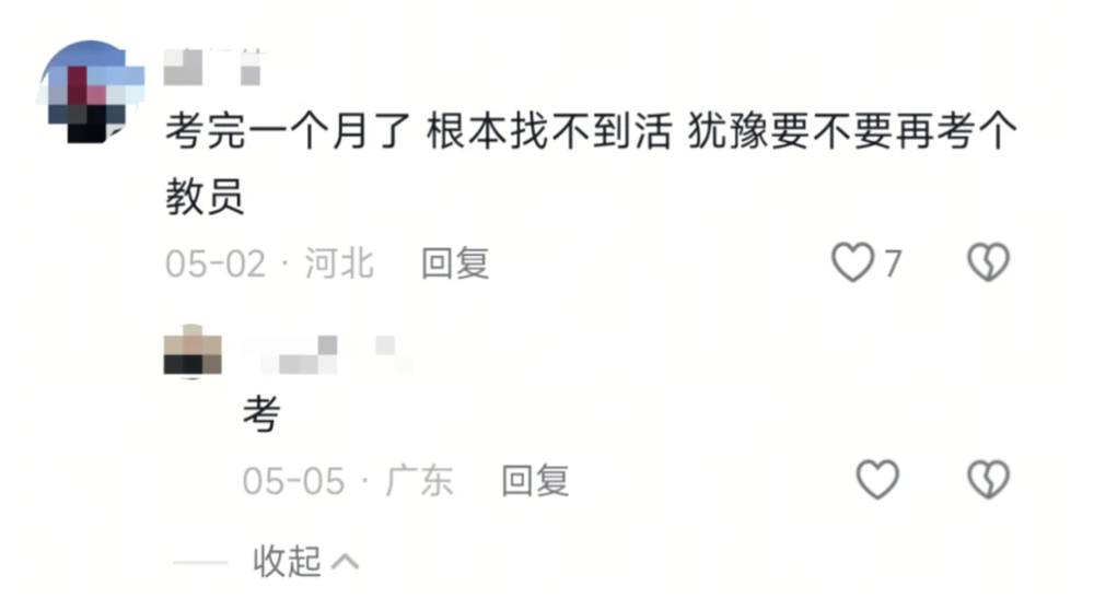 “考完一个月了,根本找不到活,犹豫要不要考个教员。”