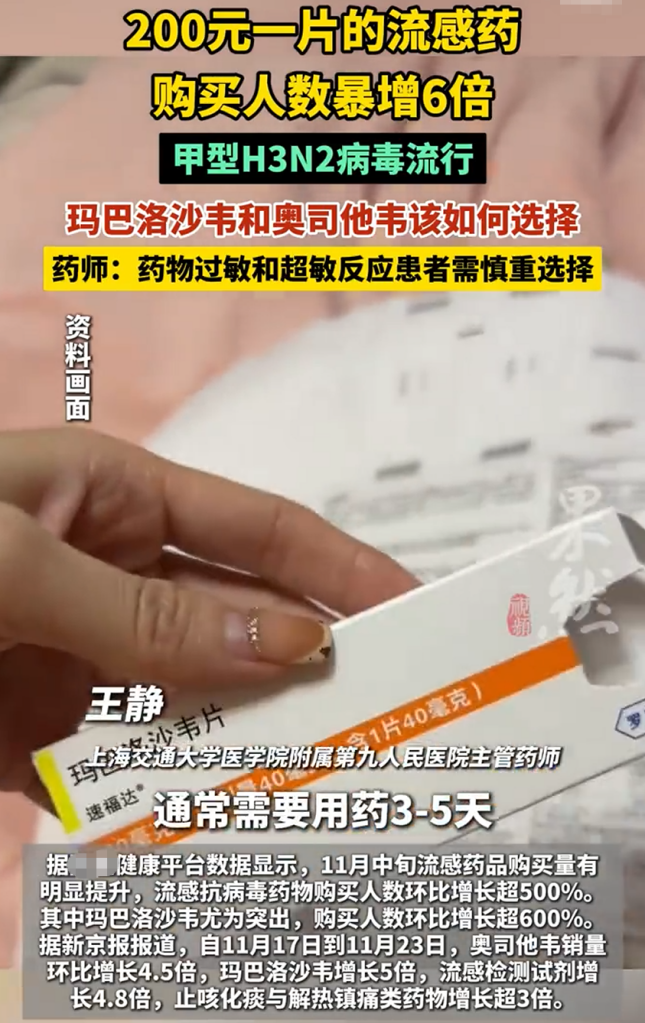 媒体报道,据某健康平台数据显示,11月中旬流感药品购买量有明显提升,流感抗病毒药物购买人数环比增长超500%。
