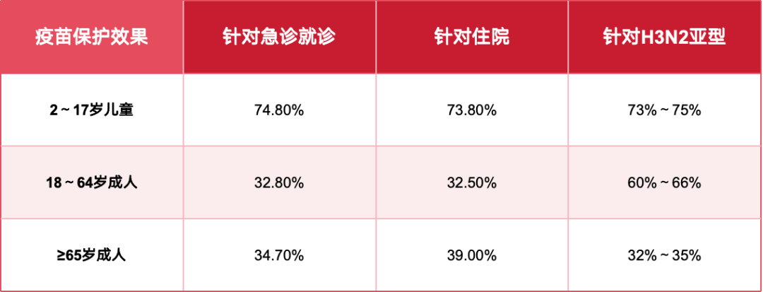 值得庆幸的是,研究结果发现流感疫苗仍旧能够降低流感所致各类风险,尤其对于儿童具有非常好的保护效果:
