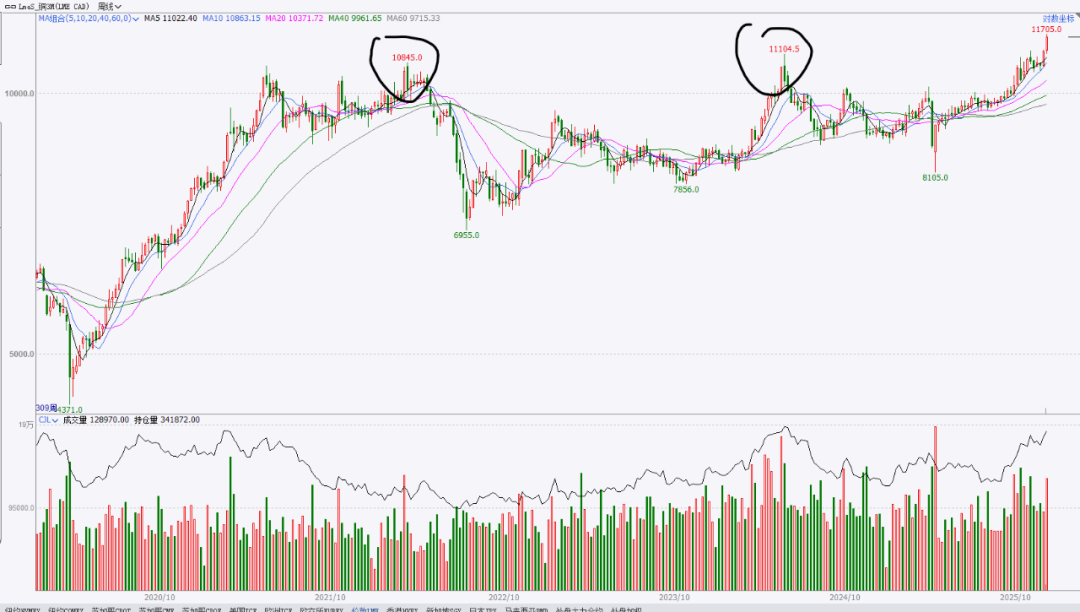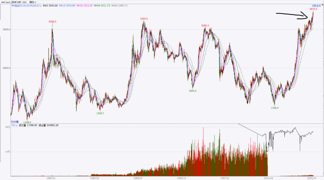 而我们今天讨论的是全历史最高的铜价,这种多重复合的顶部被打开,上一次可类比的时候,可能还是2004~2005年。