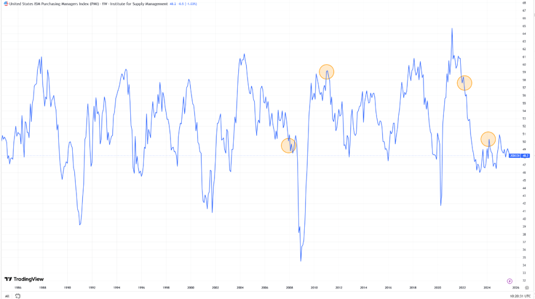 其中,2011和2022年是比较好判断的,因为PMI在高位已经有了趋缓的迹象,2008年和2024年从PMI上不好判断,但当然,方法又不是只有一个。