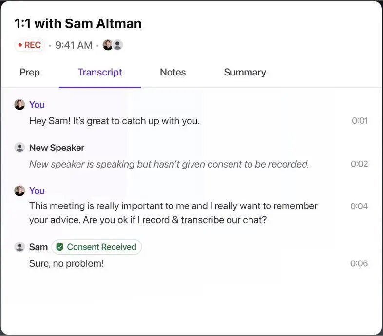 第二重是“同意选项”:未经他人允许,就不会以任何形式记录第三方的说话内容。