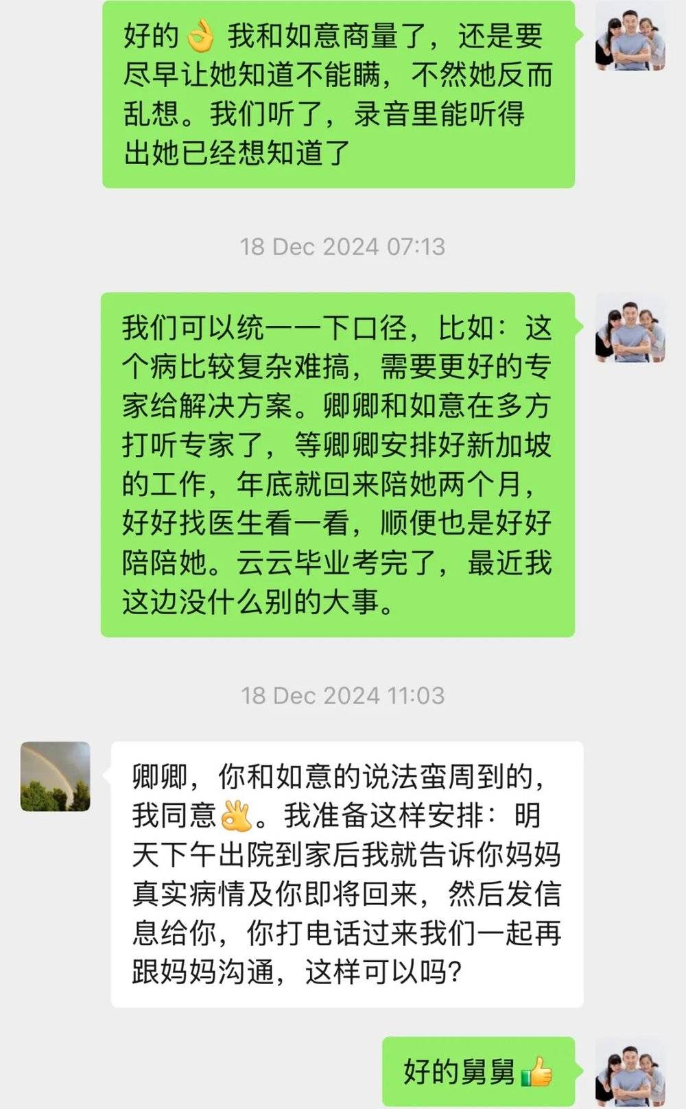 妈妈说,谢谢我们告诉她真相。如果瞒着她,她反而不踏实。