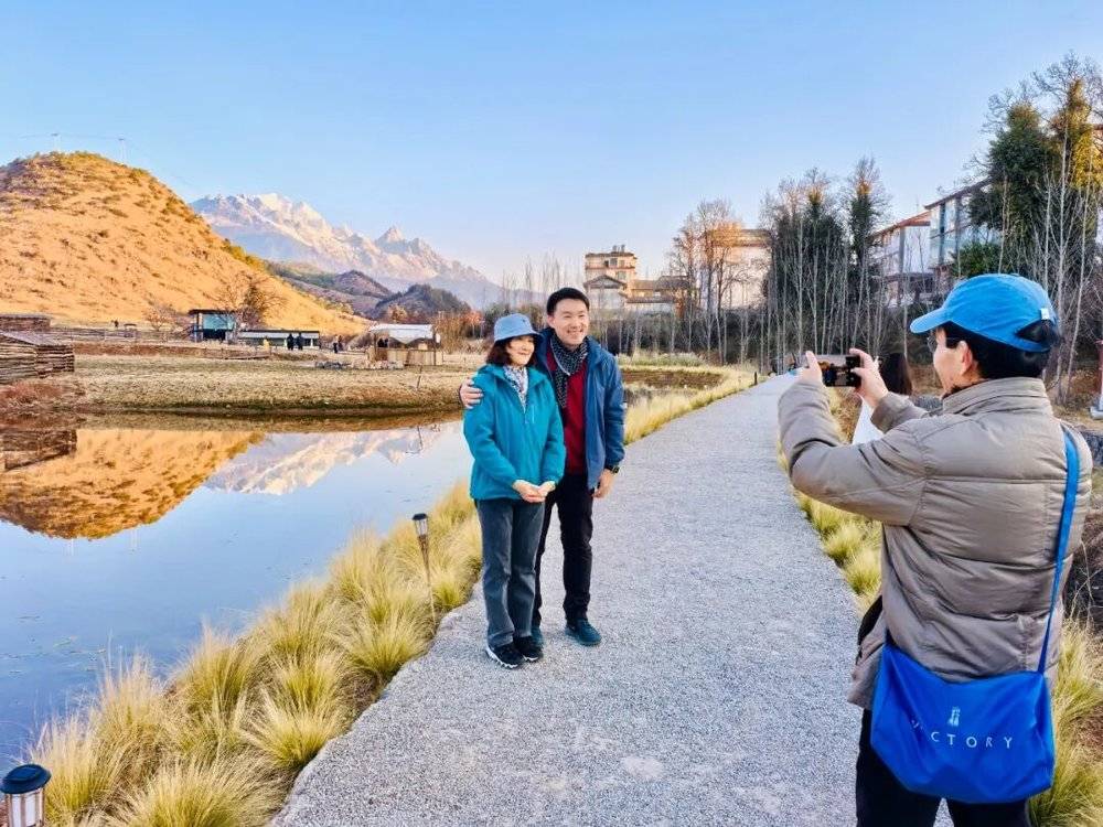 2月15日,我们一行四人登上了飞往丽江的班机。云南的天很高,特别适合爱自由的妈妈。我们在束河古镇闲逛,早起看日照金山。