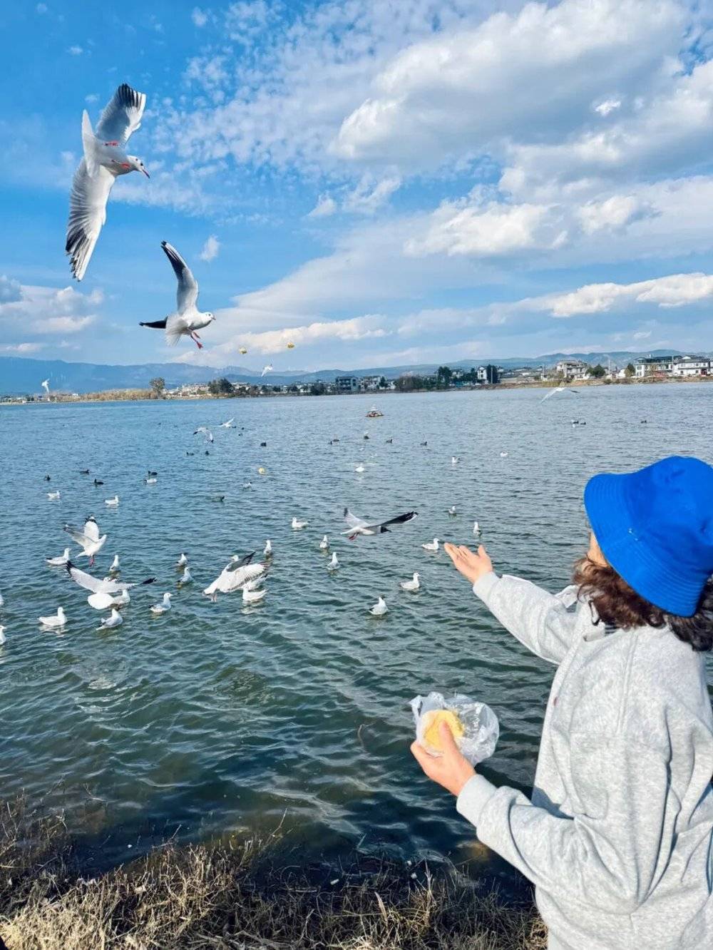 但妈妈最爱的,还是洱海边的自由自在,每天早起都去看日出。