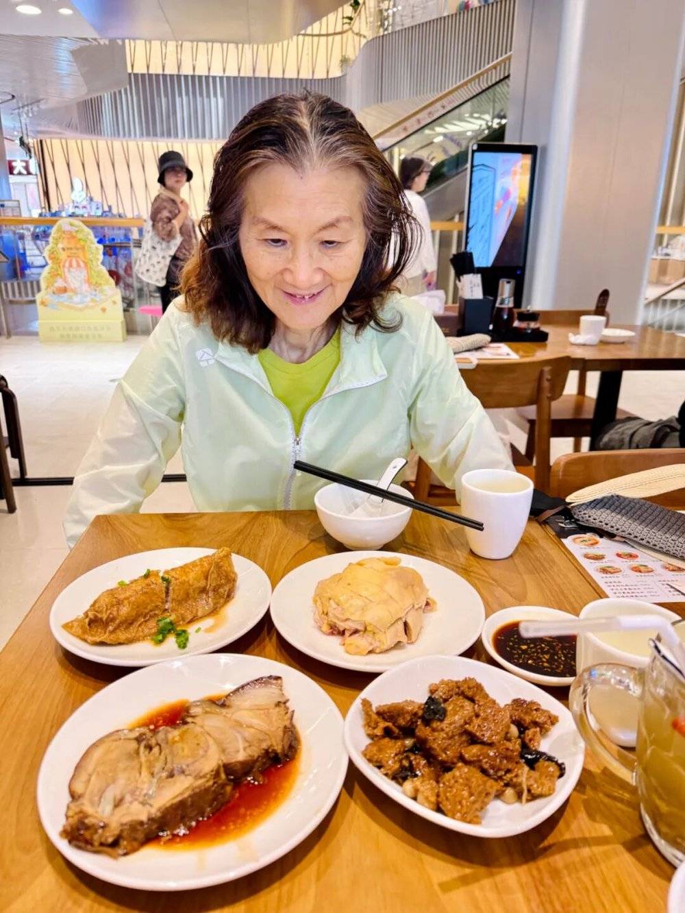 于是我每天陪着她走,把天安千树和梦清园绕了又绕。也陪她去家周围,把所有想吃的全都吃了个遍。还带她唱了久违的卡拉OK。
