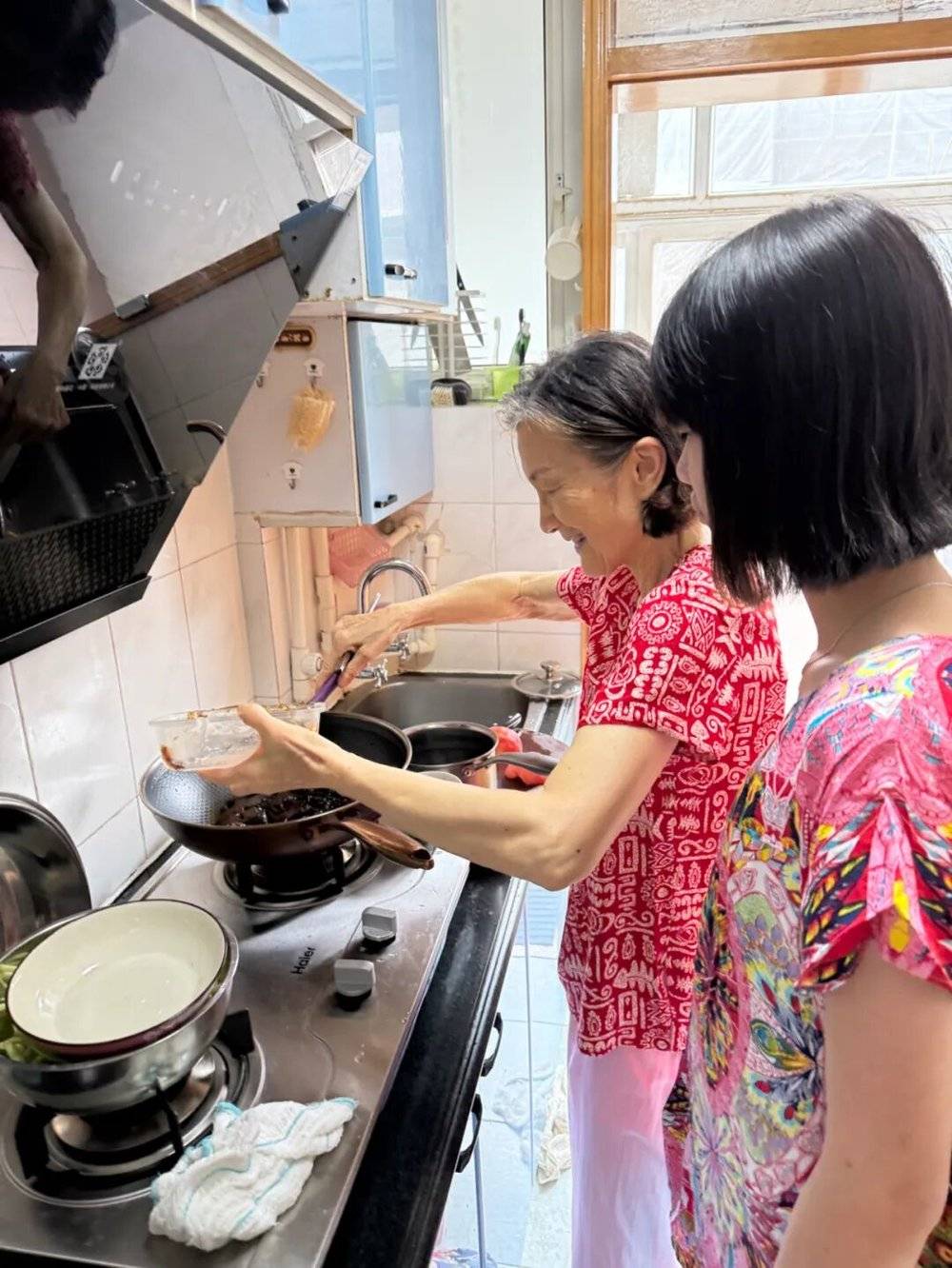 6月是新加坡的学校假期,孙女们特地赶回来看她。她给孩子们做了顿简单的家常菜,给她们翻出了亲手做的新衣服。还给她们看自己年轻时候的照片,教她们打牌。