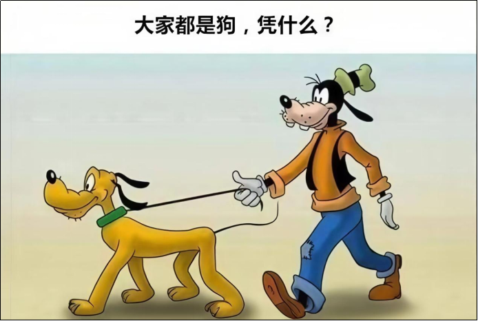 (在动画《唐老鸭》中,拟人化的“高飞”和保留狗狗特征的“布鲁托”的两种“狗生”)