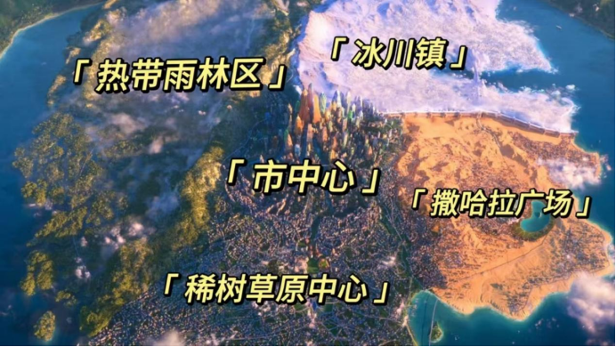 (动物城“Zootopia”被“气候墙”分隔的不同区域)