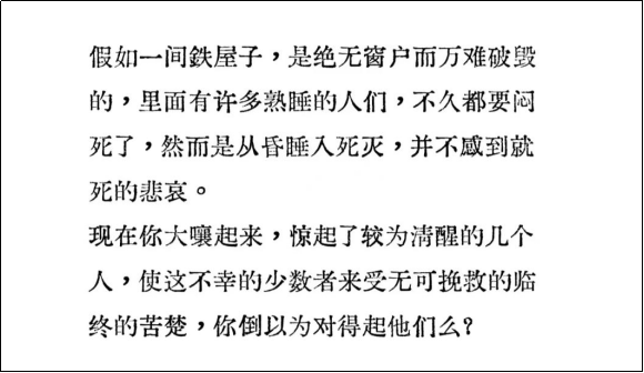 (鲁迅在《呐喊》中描述的“铁屋子”)