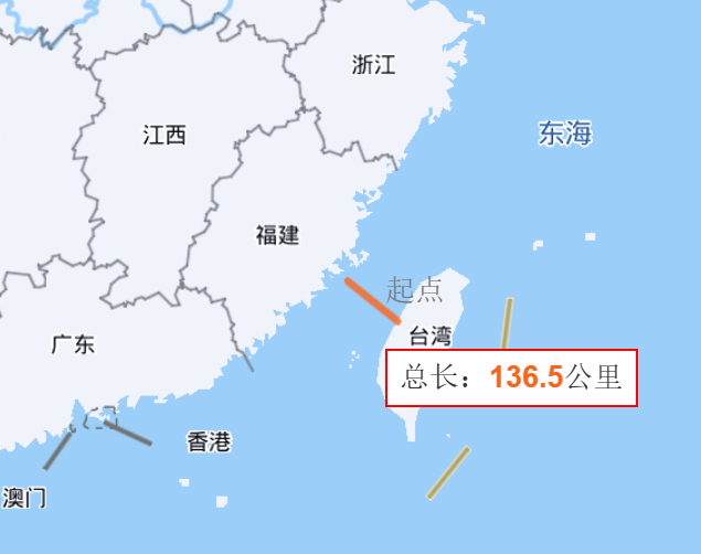 台湾海峡同样落在这一范围,其平均距离约180公里,北端最窄处约130公里。福建沿海居民长期迁徙台湾,形成紧密的血缘、语言与宗族联系。