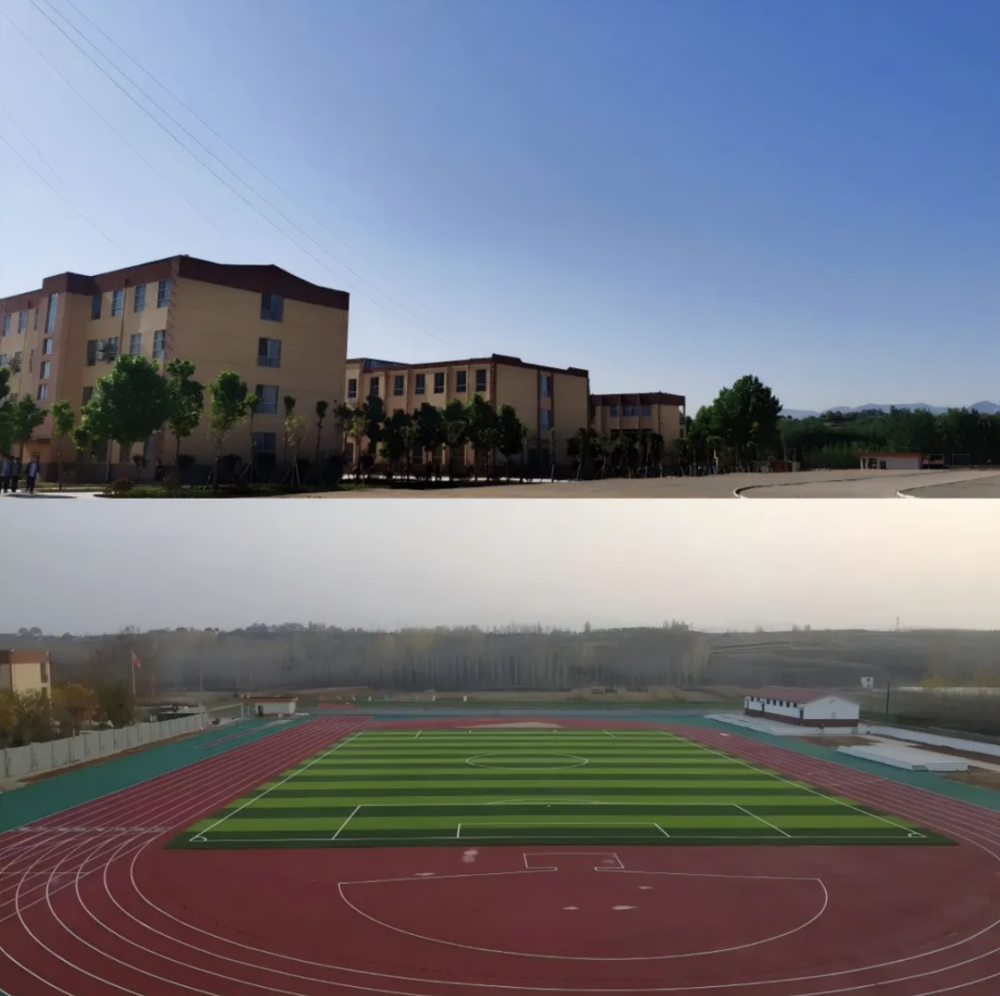 蒙阴县联城中学操场改造前后。