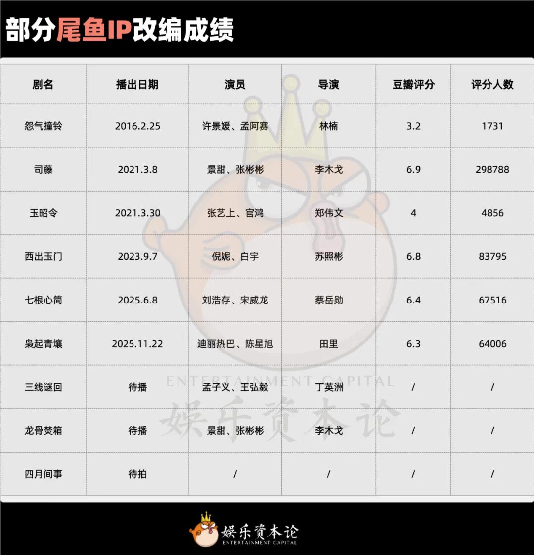 是尾鱼的故事太难懂?还是主创太爱“自由发挥”?问题恐怕都不是一句话可以解答,就好像娱乐资本论从影视从业者和书粉的口中听到了不同的答案。