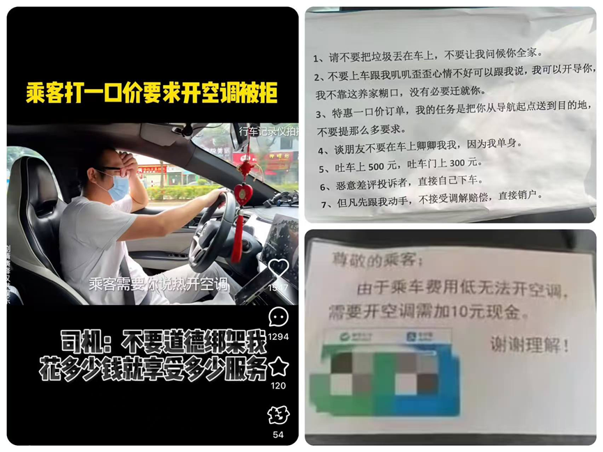 有网络段子讽刺以前的国营商店服务不好,贴着“禁止打骂顾客”的告示,这至少都还有个警醒,而网约车呢?大喇喇地将这些不文明不礼貌的语言贴出来,无差别攻击所有乘客,把全部的冤屈都算在乘客头上,这样就能抚平他们的伤痛吗?