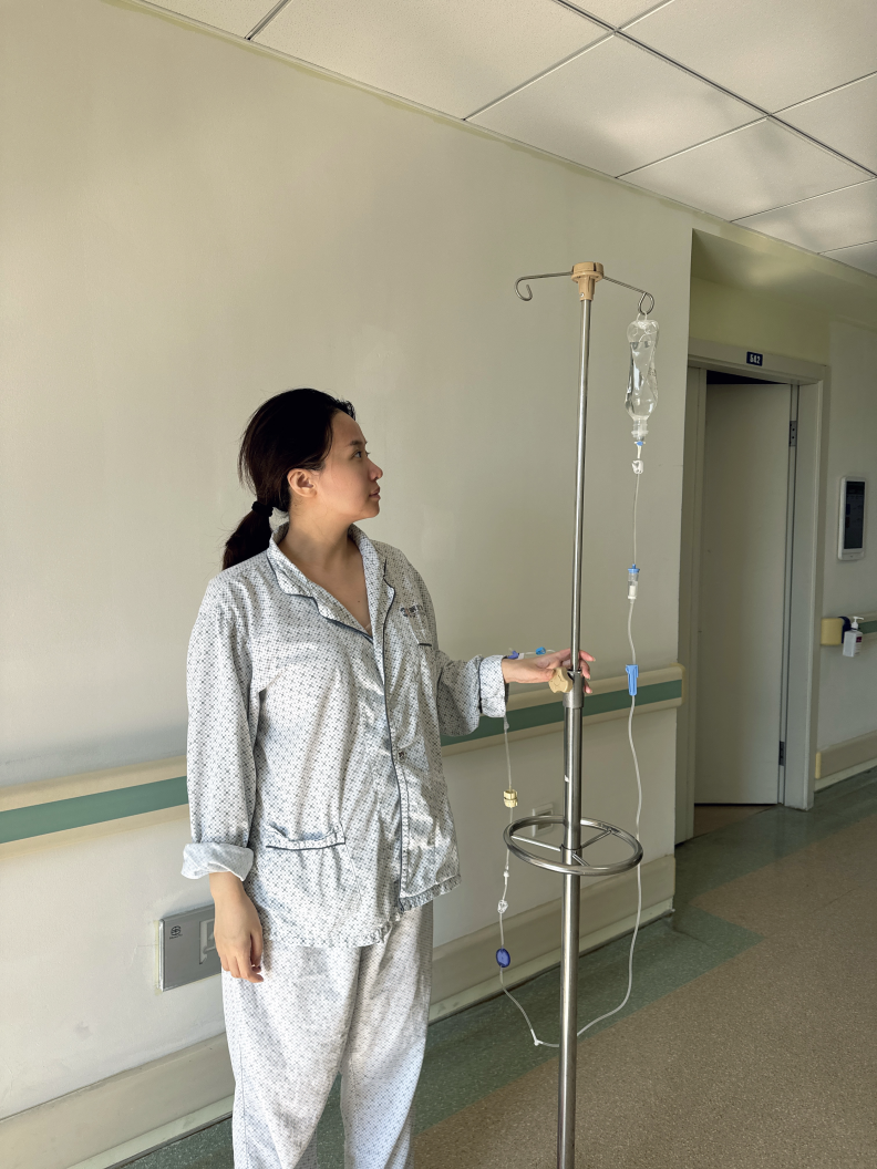 更让邓思蓉恐惧的,是随之而来的剧烈孕反。短短几周,她的孕吐愈发严重,几乎没法进食,整日头晕、干呕,体重从94斤掉到八十多,只能靠住院输液维持。