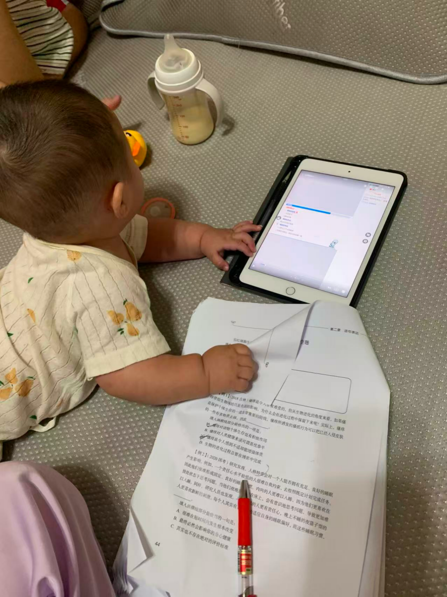 张沐禾觉得自己已经很幸运了,孩子好带、婆婆承担了大部分的照护任务,她除了喂奶几乎不用操心别的。但即使如此,在备考的那段时间里,她也从未睡过一个整觉。频繁起夜喂奶让她明显感觉记忆力下降,常常背完的知识点还没来得及消化就从脑子里溜走了。
