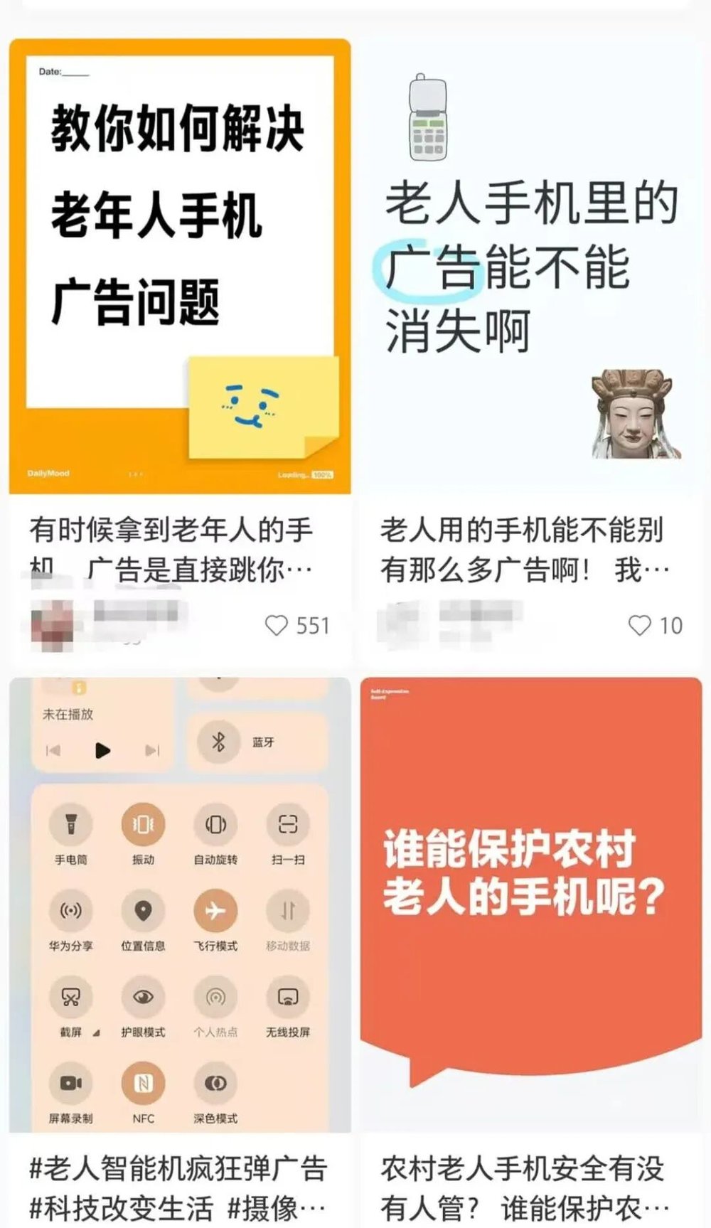 她也查找了各种各样的方法:关闭“个性化广告推荐”、关闭应用的通知权限、关闭手机厂商的广告系统、给老人手机开启长辈模式,限制APP安装权限,卸载各种清理大师、WiFi万能钥匙、免费小说等高危应用……但最终效果有限,隔不久,那些杂草又长得郁郁葱葱了。