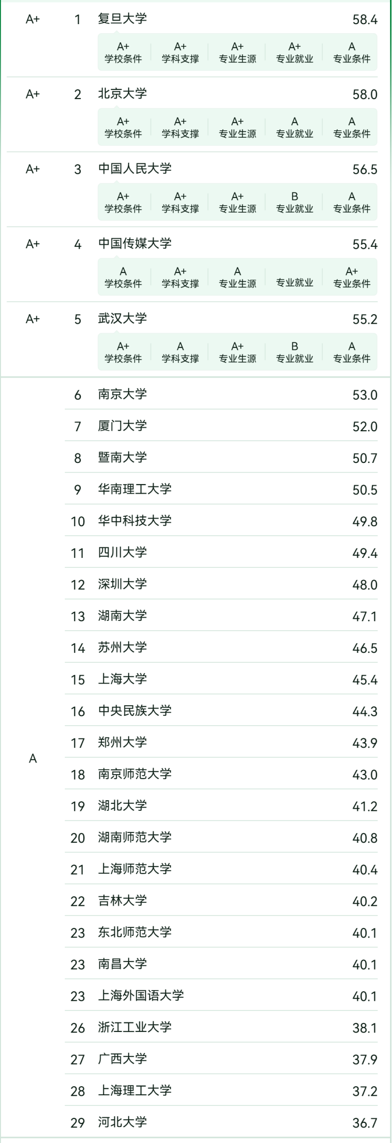 根据虎扑今年6月发布的大学专业评分,在一众低分新传类专业中,广告学凭借5.9分成为唯一一个超过5分的专业。虽然5.9分实在也算不上是高分,但在新传学子“每个专业互相学”的常态下,广告学能脱颖而出指定是有点说法。