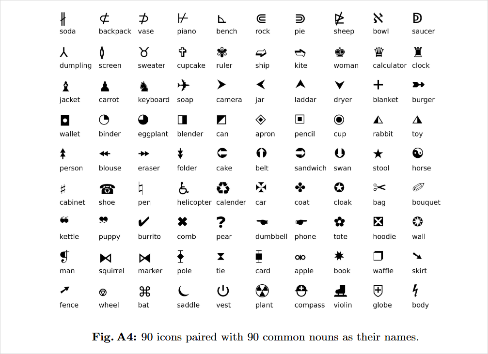 两两图标分为一组,规定好它们的主体和关系,用Unicode字符画在 32×32 的小方块里。