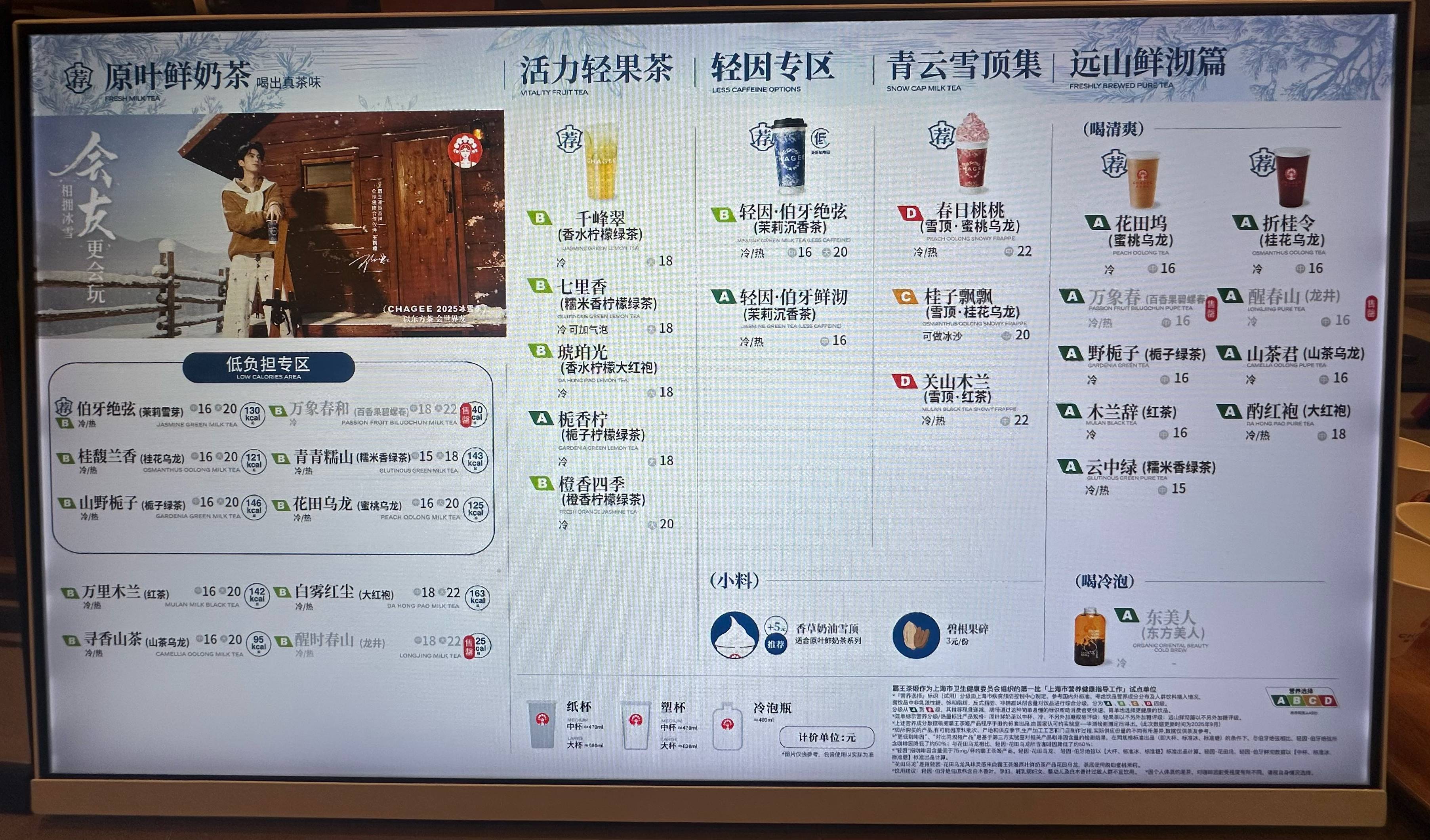 图为霸王茶姬新品“伯牙绝弦”花香款电子屏展示