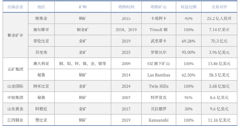 图:代表性央国企收购海外矿山项目,资料来源:银河证券