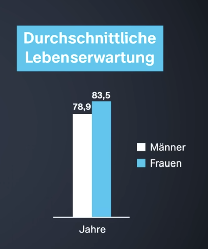 另外,德国人口的平均寿命达到了80岁左右(白色是男性,蓝色是女性)。如果65岁到70岁之间退休的话,还有大概十多年的时间领取养老金(其实我觉得这时间也不长啊)。