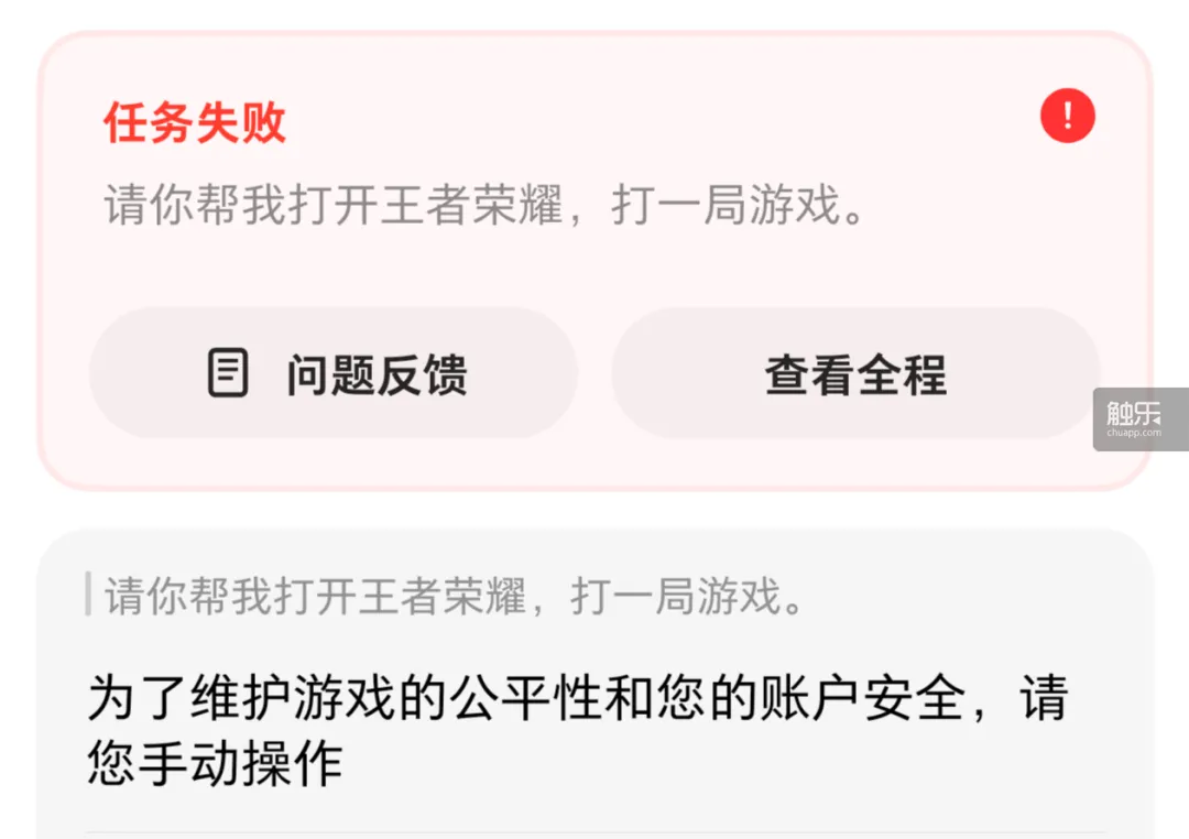 张柏树也在《王者荣耀》里试过豆包。因为豆包在《三角洲行动》中的大失败,张柏树降低了自己的期待,他注册了一个新号,让豆包去玩新手教程。豆包控制的安琪拉刚走了两步,还没来得及丢出第一个技能,屏幕上直接弹出了“环境异常”的警告,账号被强制下线。