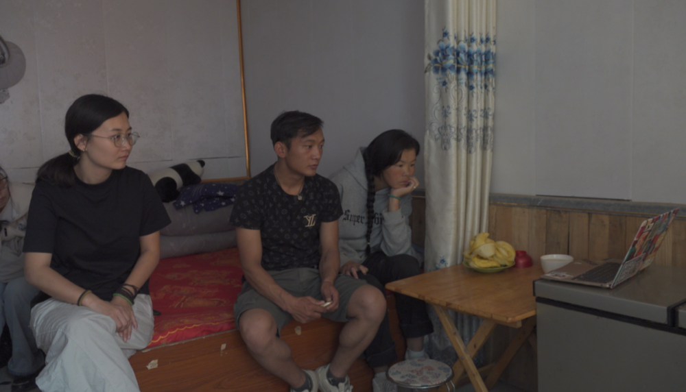 ◉旦增宗支在共和县出租屋里观看我去年拍摄的纪录片。图片:焦小芳
