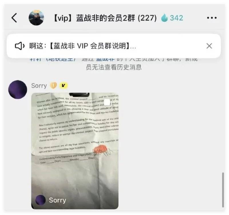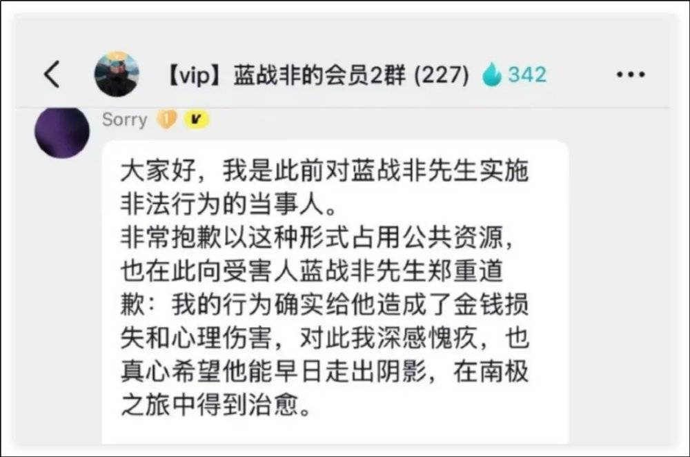 一位网友在蓝战非粉丝群里爆料这件事是自己干的。