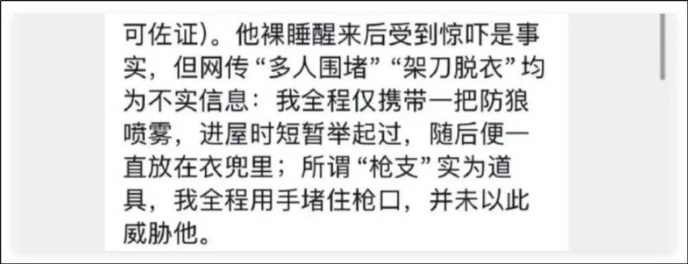 他说自己就带了一防狼喷雾,都没亮出来;还有一把道具枪,装装样子而已。