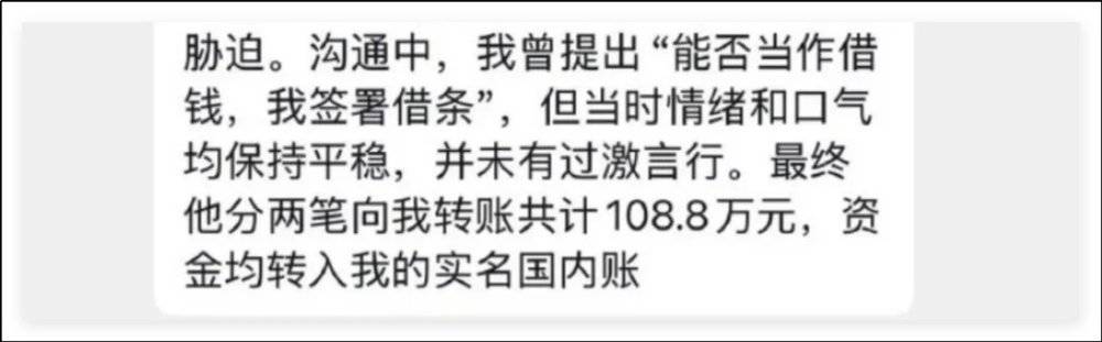 转了108.8万,不过108.8万第一次是安保公司接到蓝战非求助电话后,先说出来的。
