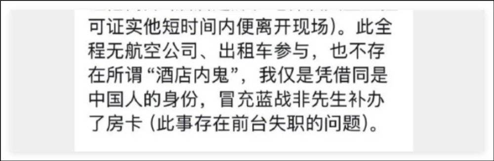 那没有航空公司参与、没有黑车司机、没有黑人参与,也没有黑警,那你总买通人拿了房卡了吧。