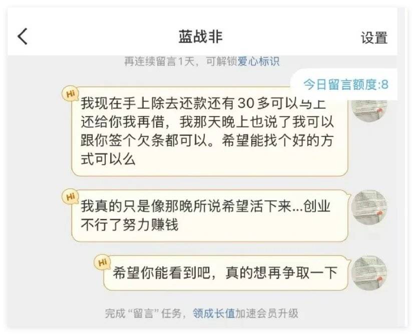 蓝战非之前说的是有网贷。